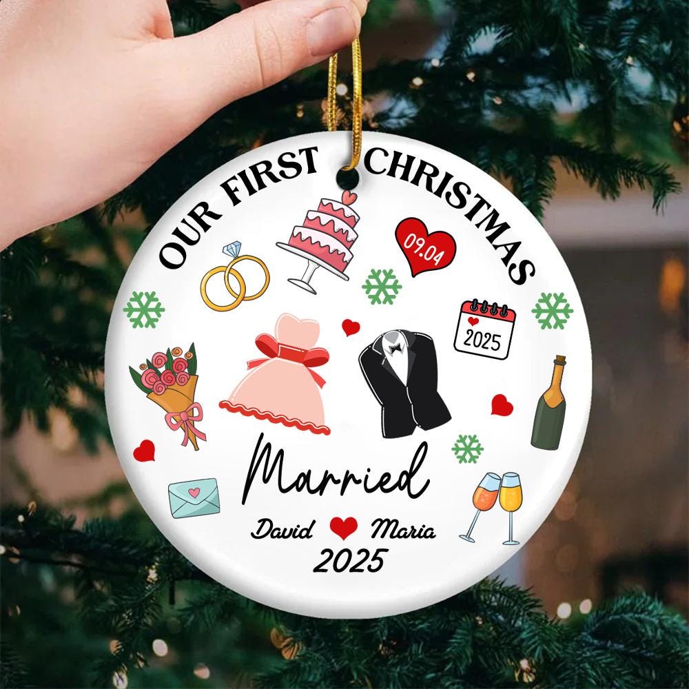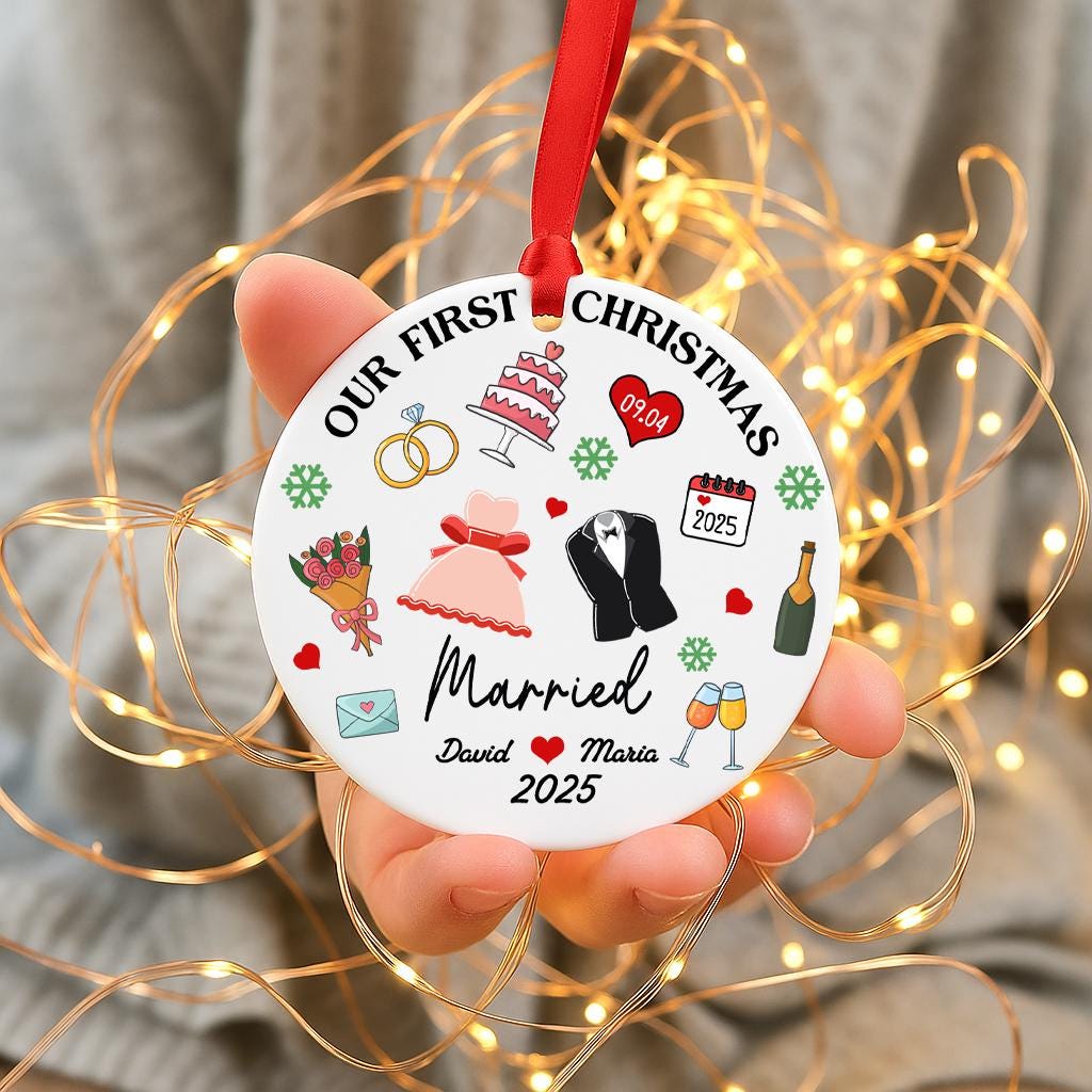 🎄 Celebrate your first holiday season as a married couple with our Personalized “Our First Christmas as Mr and Mrs” Ornament 2025! This elegant keepsake is the perfect way to commemorate your wedding year and add a special touch to your Christmas tree.