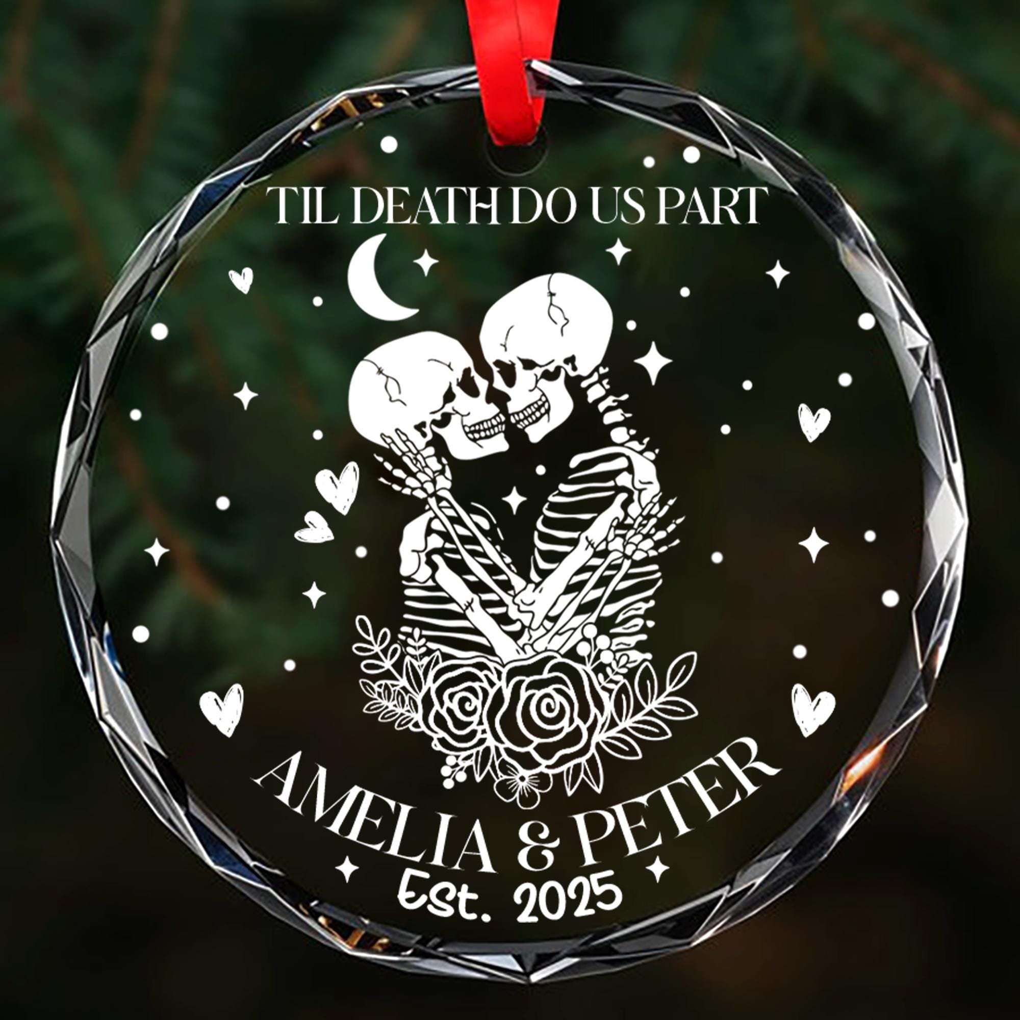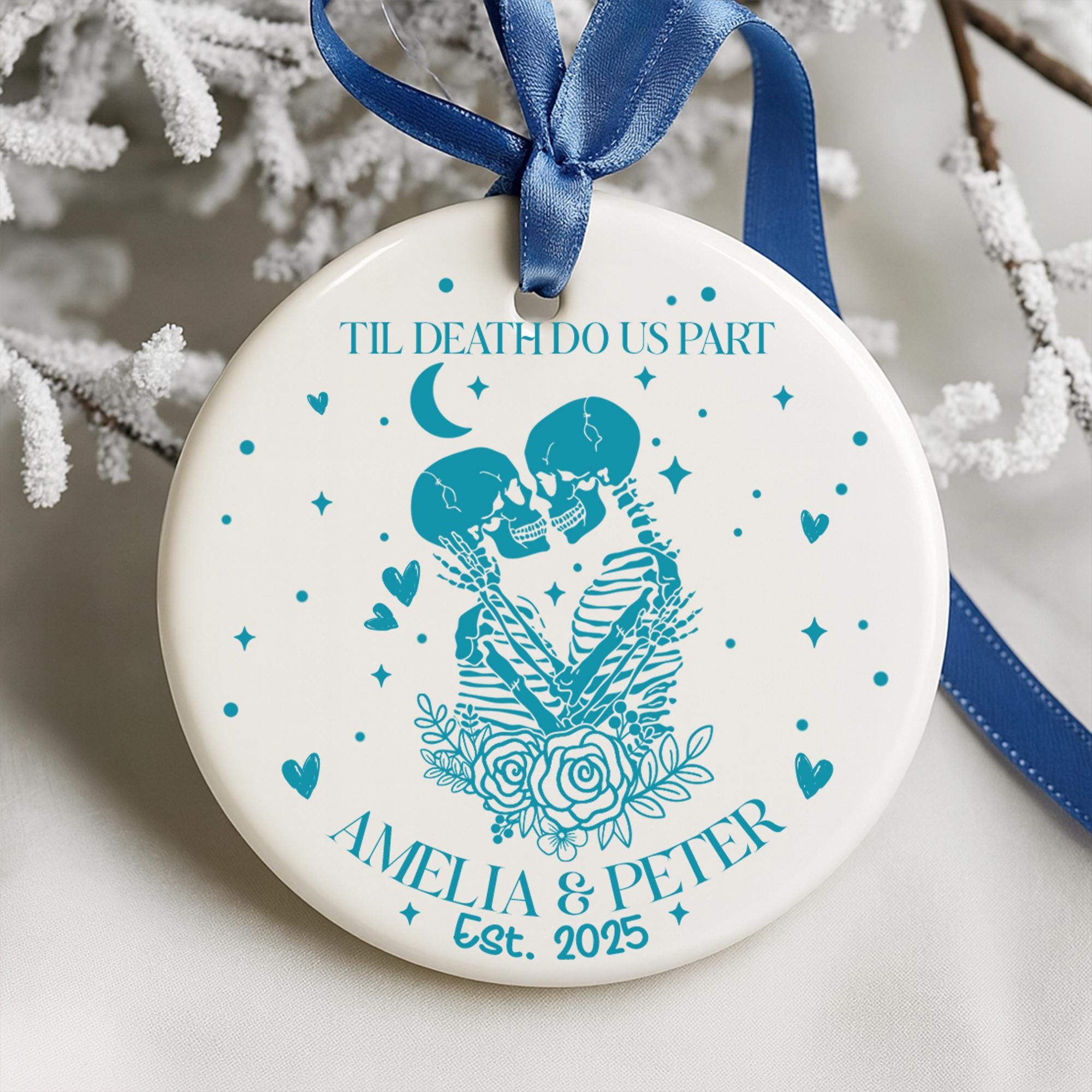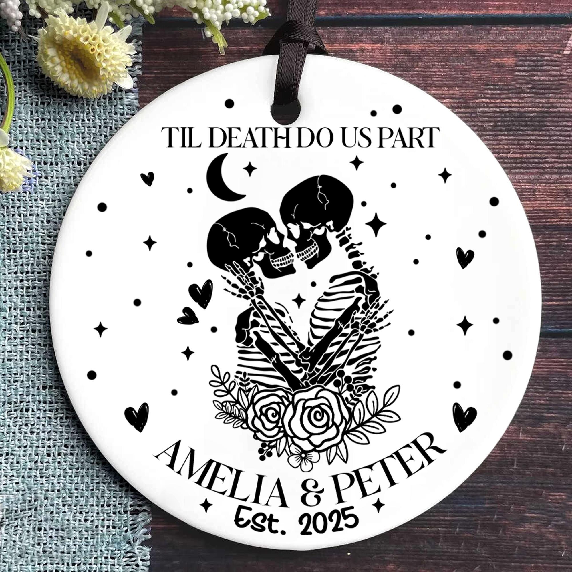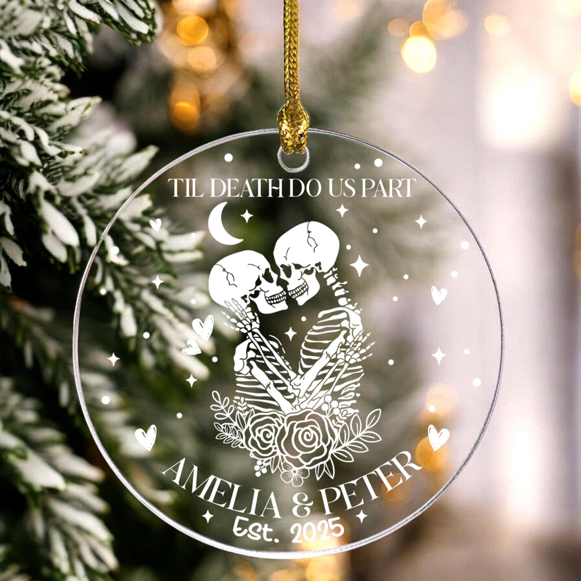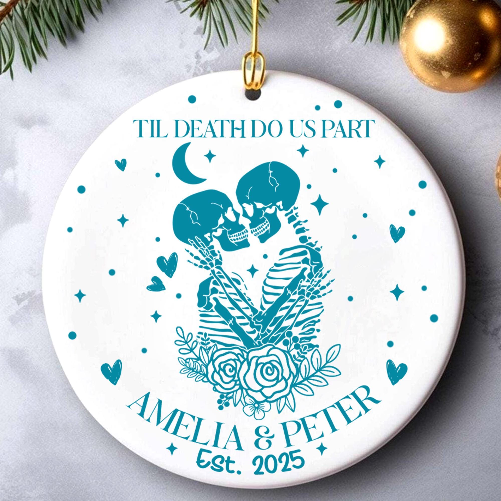 Celebrate your forever bond with this Personalized Skeleton Couple Ornament, a gothic yet romantic keepsake engraved with the iconic phrase “Til Death Do Us Part.” Perfectly designed for couples who want something unique, this ornament combines dark elegance with timeless love.